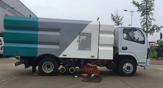 該洗掃車(chē)采用東風(fēng)多利卡國六二類(lèi)底盤(pán)改裝,加裝副發(fā)動(dòng)機、風(fēng)機、清水箱、垃圾箱、左右立掃、掃盤(pán)降塵系統、左右高壓側噴高、吸盤(pán)內置高壓主噴桿、氣動(dòng)系統、液壓系統、專(zhuān)用裝置電控系統和副車(chē)架等改裝而成