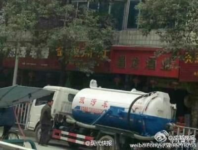 吸污車(chē)“張口”噴糞 商鋪路人不幸中招