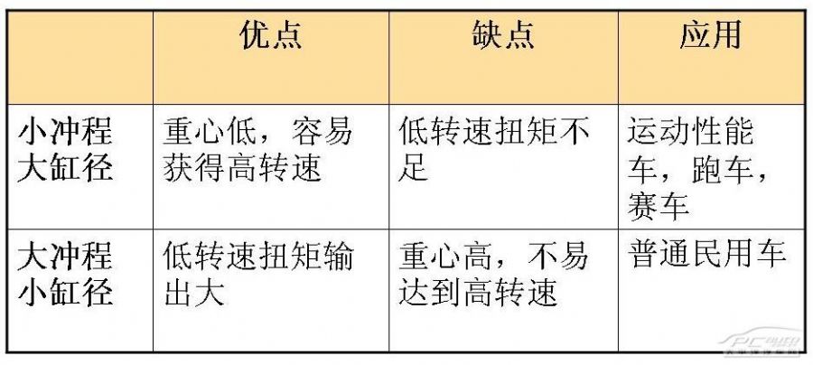 缸徑和沖程對發(fā)動(dòng)機的性能有很大的影響,一般關(guān)系如下: